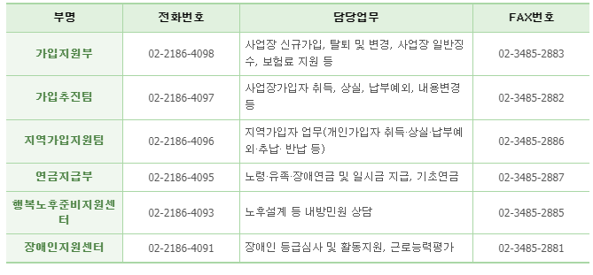 해당 지사의 담당 업무를 수행하는 부서의 연락처가