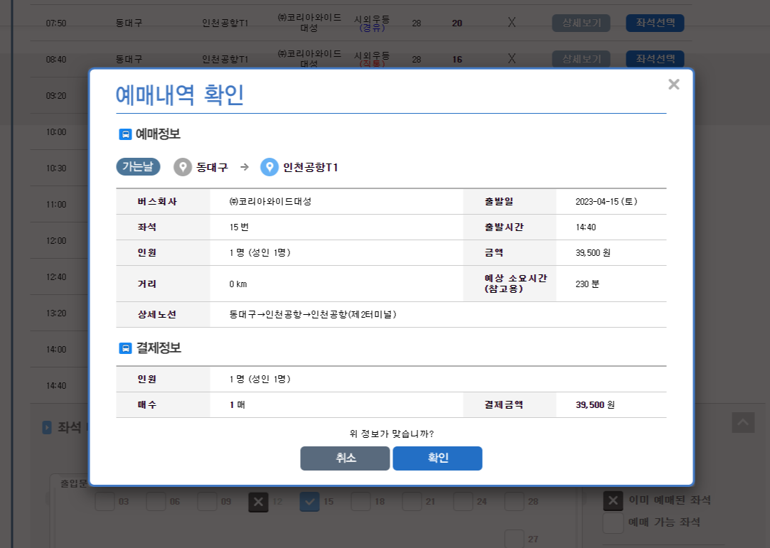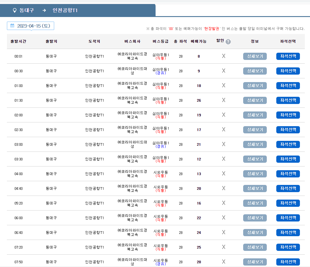대구에서 인천공항가는 리무진버스 인터넷예약 하는 방법 운행시간표