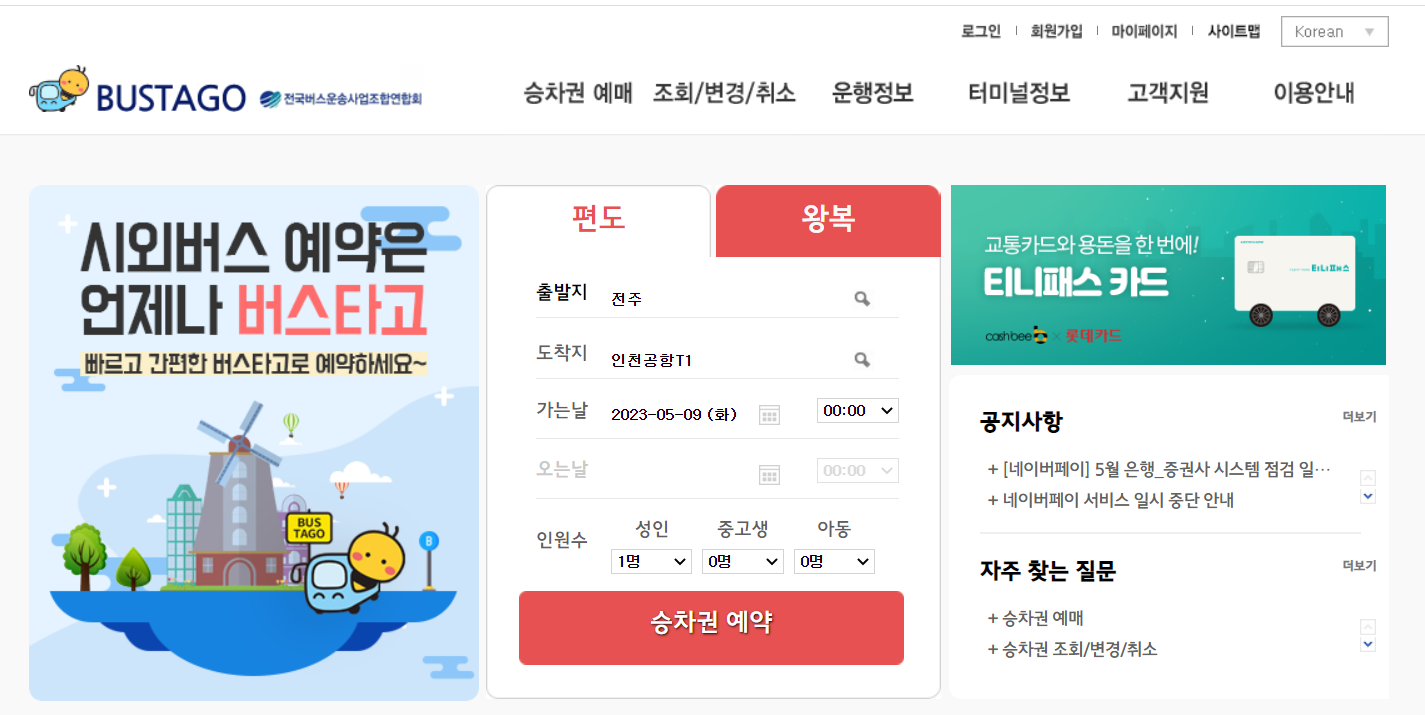 ☞ 버스타고 : 인터넷 검색해서 바로 예약가능